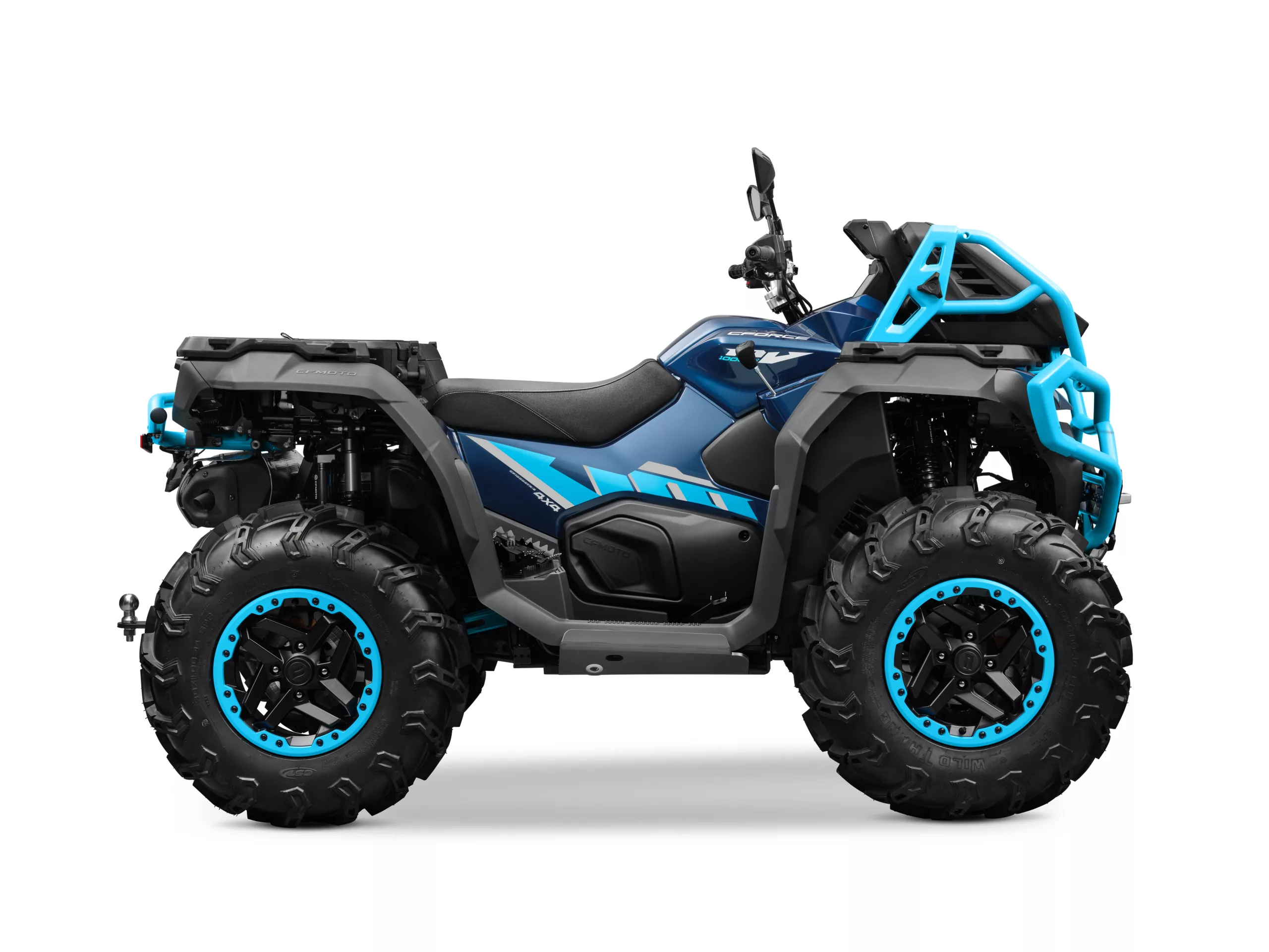 De CFORCE 1000 MUD wordt aangedreven door een 963 cc vloeistofgekoelde SOHC-viercilindermotor met 86pk en 84.05 Nm koppel. Dankzij de EFI-brandstofinjectie reageert de quad direct en soepel op elke gasbeweging. De CVT-transmissie met H/L/N/R/P-standen zorgt voor constante kracht, zowel bij langzaam precisiewerk als bij hogere snelheden tot 90 km/u. Daarnaast biedt de schakelbare 2WD/4WD met differentieelslot maximale tractie op modder, hellingen en zwaar terrein.