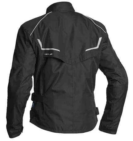 Dryway ® functioneel membraan CE-gecertificeerd, klasse AA Afneembare thermovoering Verstelbare CE-gecertificeerde beschermers, niveau 1, op schouders en ellebogen Kan worden aangevuld met een rugbeschermer Open achterventilatie voor verbeterde ventilatie Lange verbindingsrits naar broek Verstelbare kraag, taille, zoom en mouwuiteinden